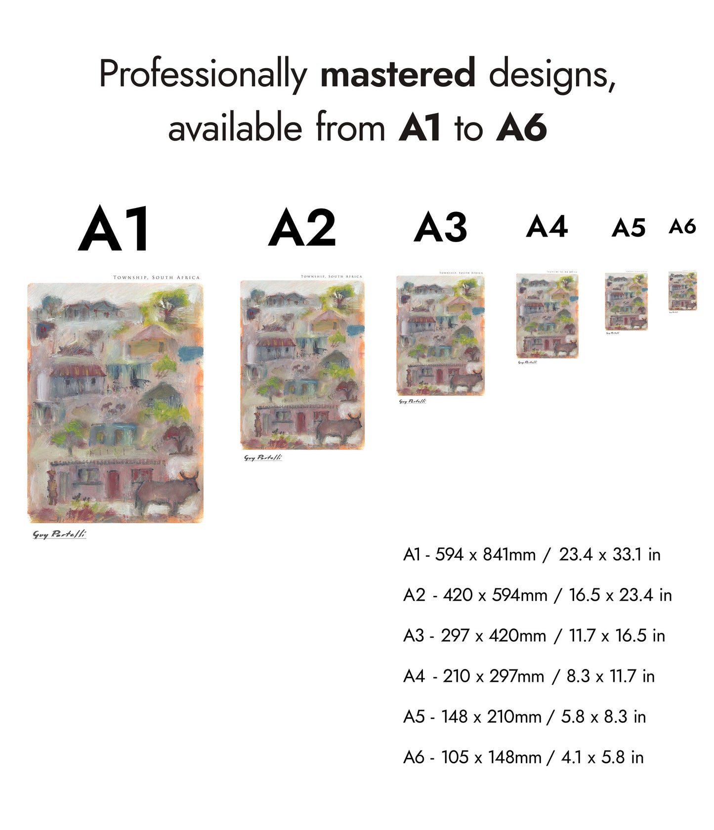 8 colour giclée print process on high-quality 230gsm archival matte paper. All our paper is FSC Certified and prints come with a lifetime fade-resistance guarantee.