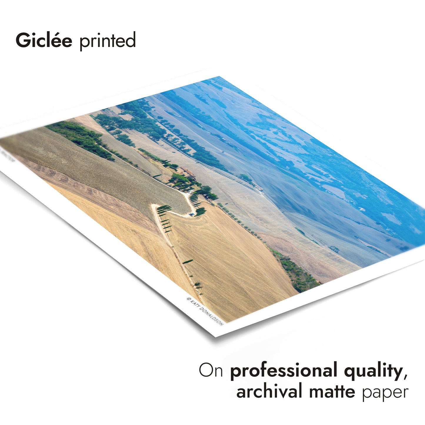 8 colour giclée print process on high-quality 230gsm archival matte paper. All our paper is FSC Certified and prints come with a lifetime fade-resistance guarantee.