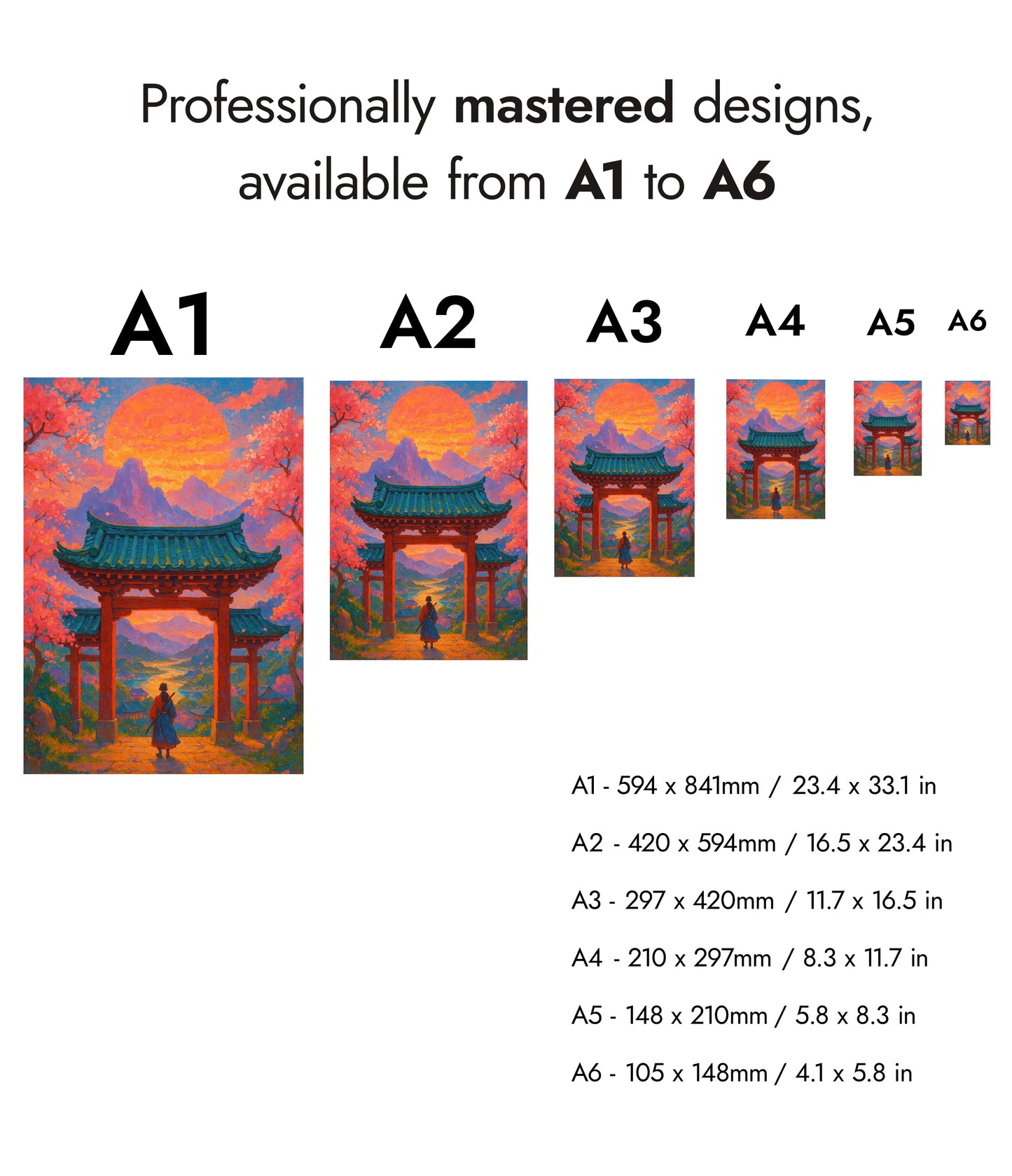 8 colour gicleé print process on FSC-certified 200gsm archival matte paper, with lifetime fade-resistance guaranteed.
