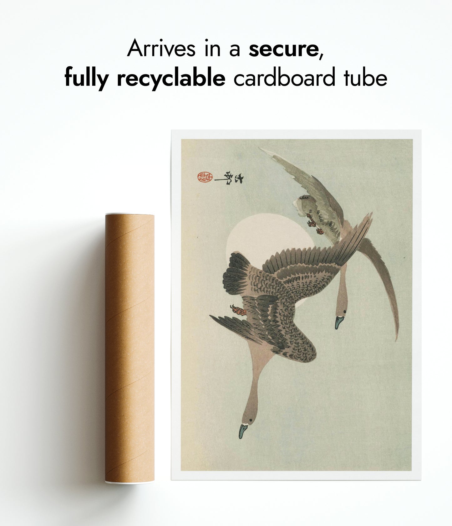 All orders are securely packed in recyclable, eco-friendly solutions. Frames are protected with sustainable bubble wrap alternatives inside thick boxes. Print only orders are shipped in heavy-duty cardboard tubes or protective hard-backed envelopes.