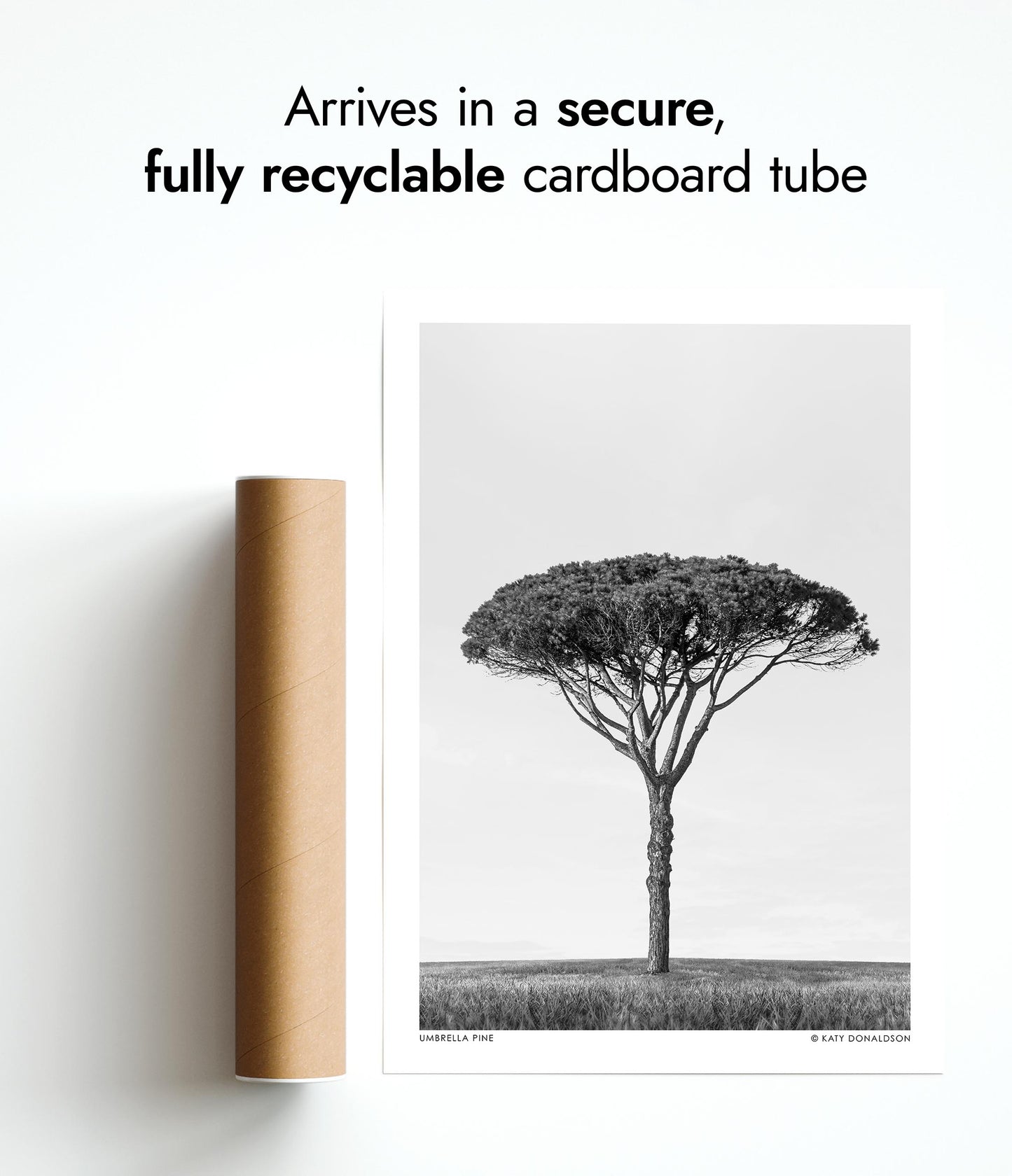 All orders are securely packed in recyclable, eco-friendly solutions. Frames are protected with sustainable bubble wrap alternatives inside thick boxes. Print only orders are shipped in heavy-duty cardboard tubes or protective hard-backed envelopes.