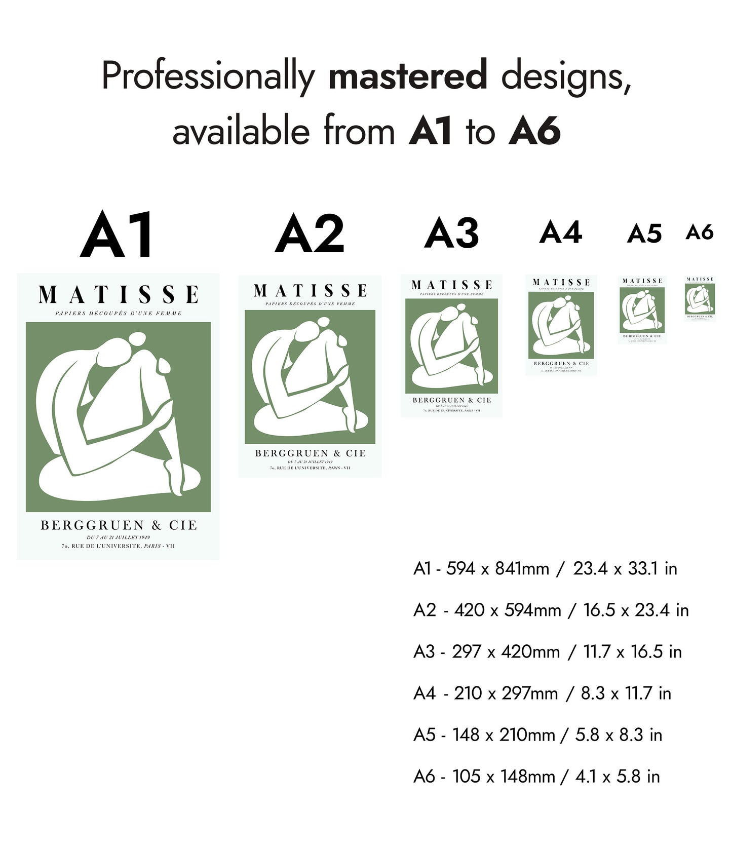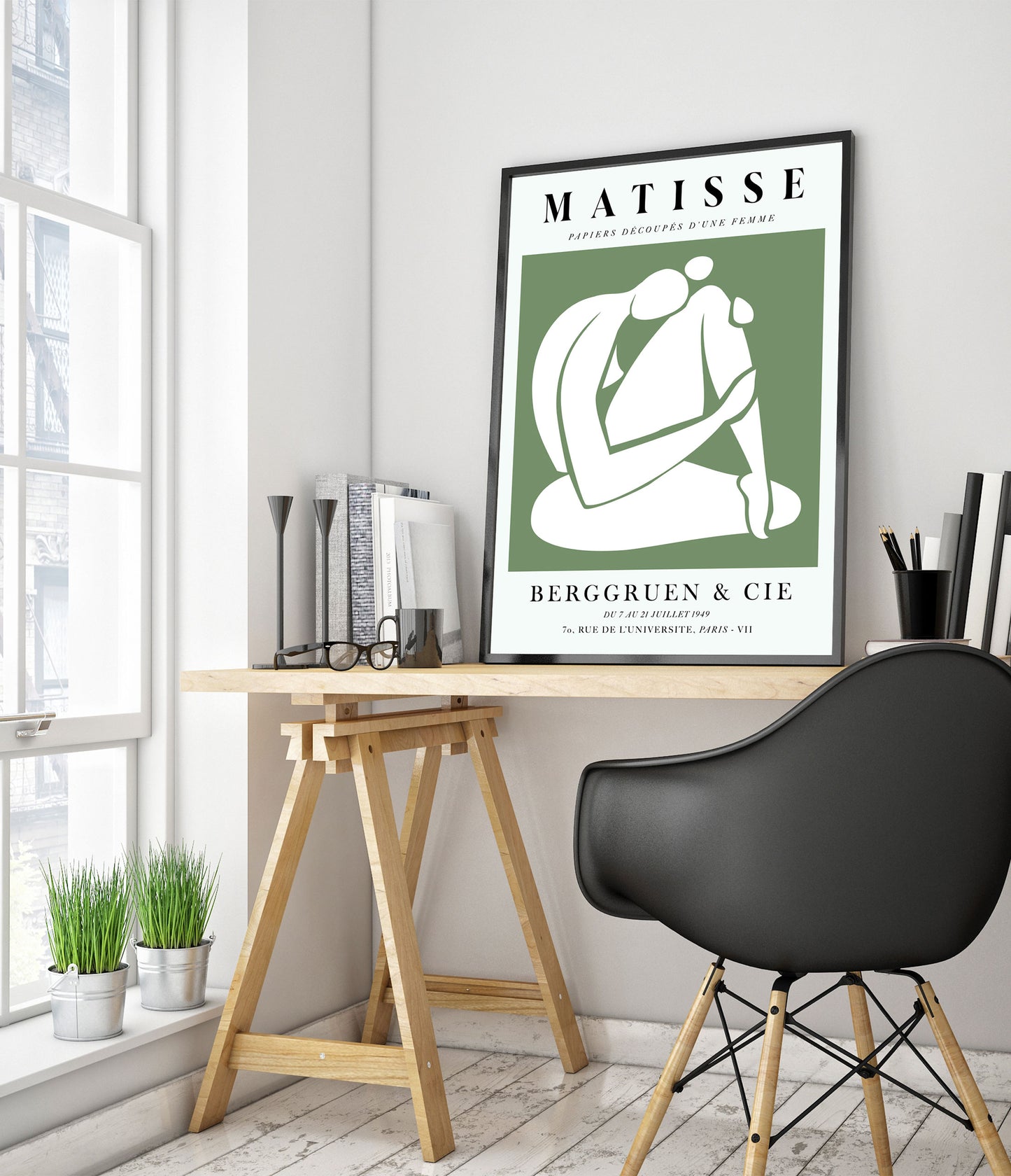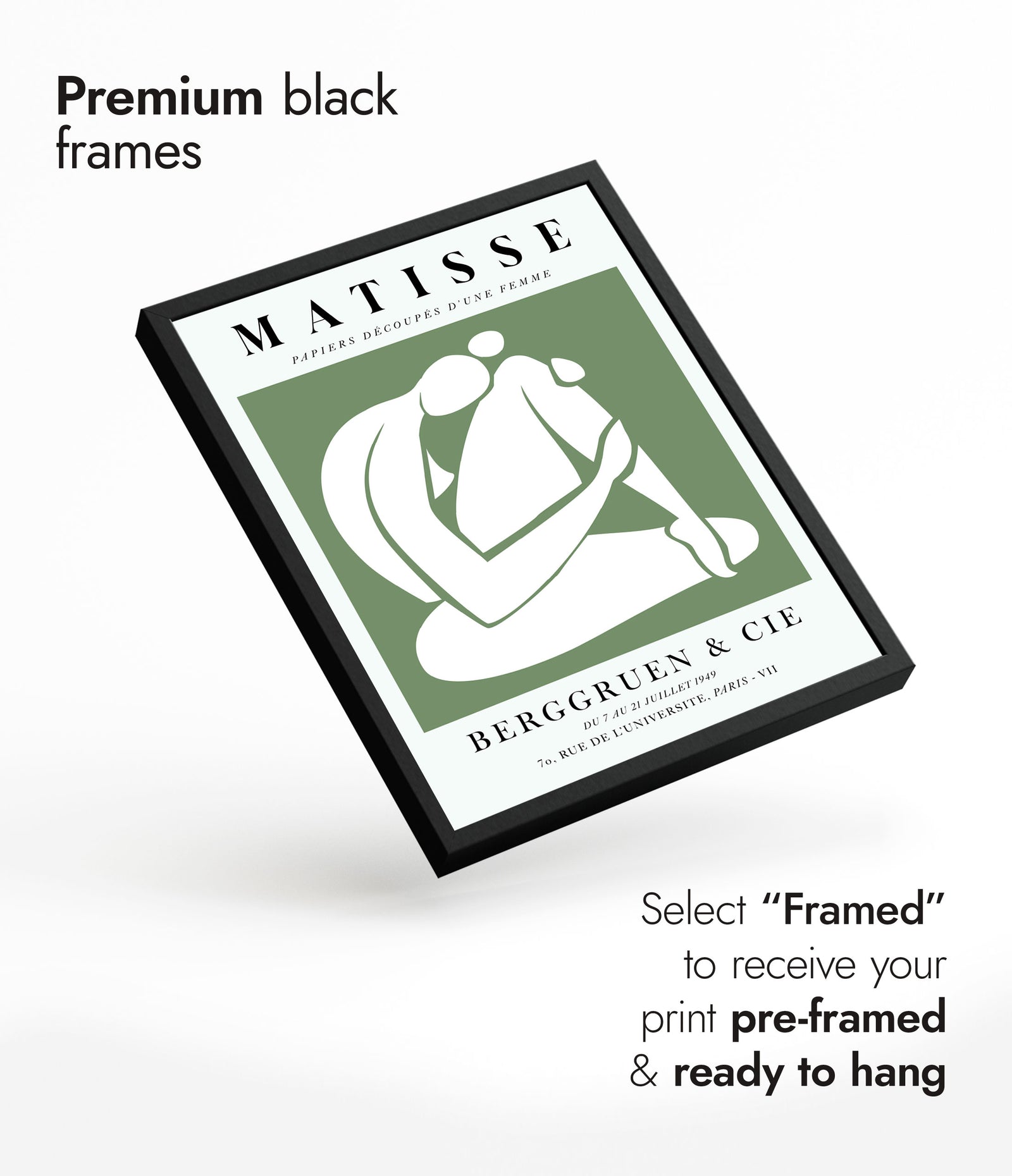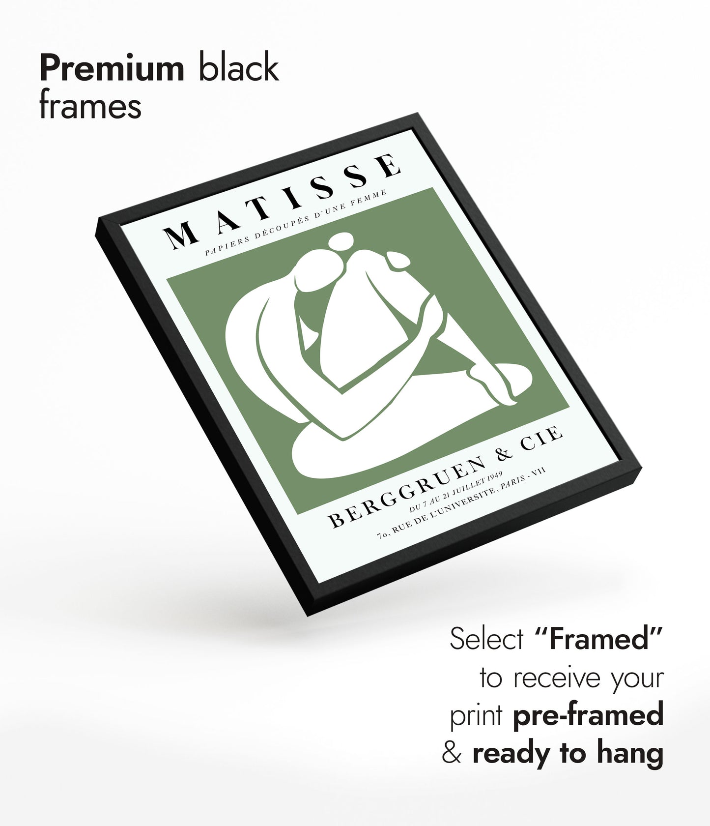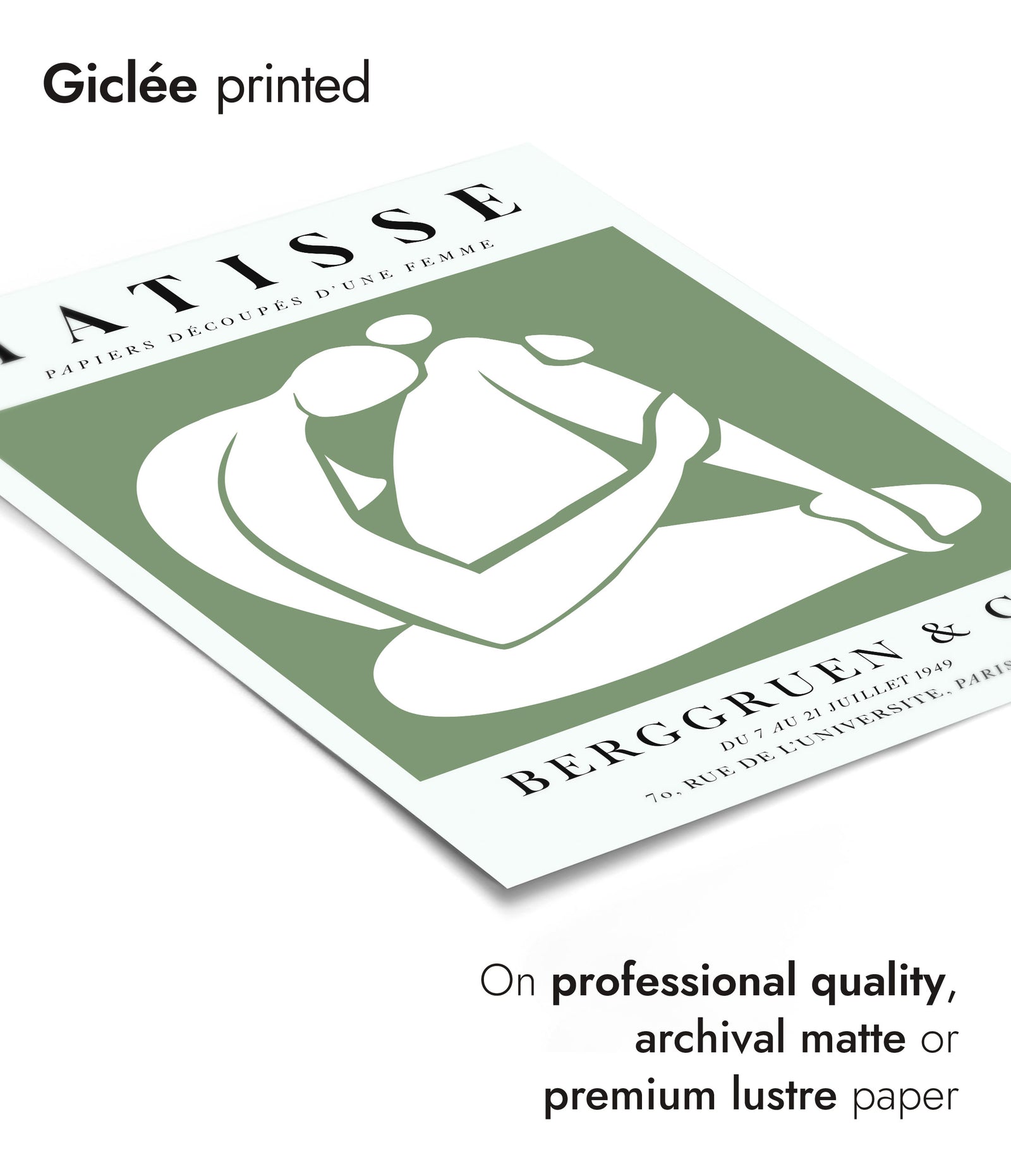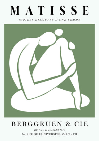 This "Une Femme Verte, À Genoux" poster by Henri Matisse showcases a minimalist, graphic cutout of a nude woman. Using simple shapes and a calming green background, Matisse captures the essence of serene introspection. Perfect for a modern or contemporary space, this exhibition-style print highlights the artist's mastery of form and colour in his collage work.