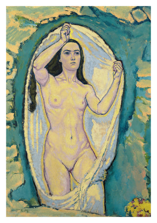 This "Venus in the Grotto" poster by Kolomon Moser captures the mythical beauty of Venus emerging from a grotto. The artwork, blending Symbolism and Expressionism, features striking brushstrokes and vibrant hues. Perfect for those drawn to themes of gods, goddesses, and fantasy, this poster emphasizes Venus in her purest form, making it a captivating addition to any space.