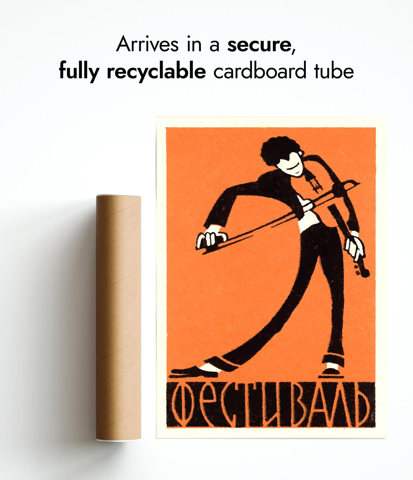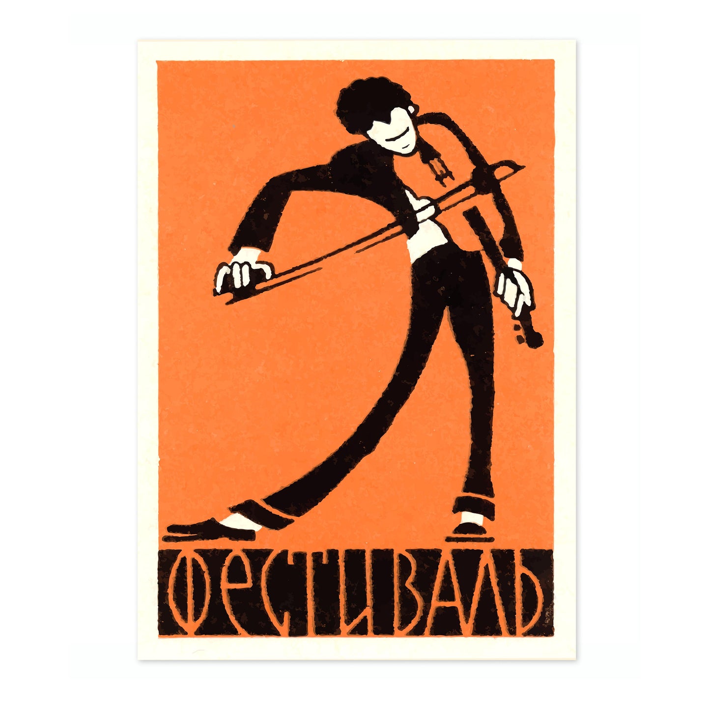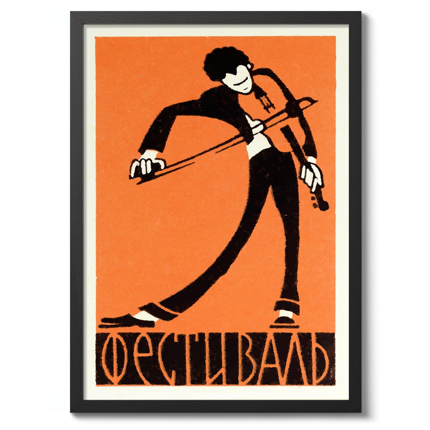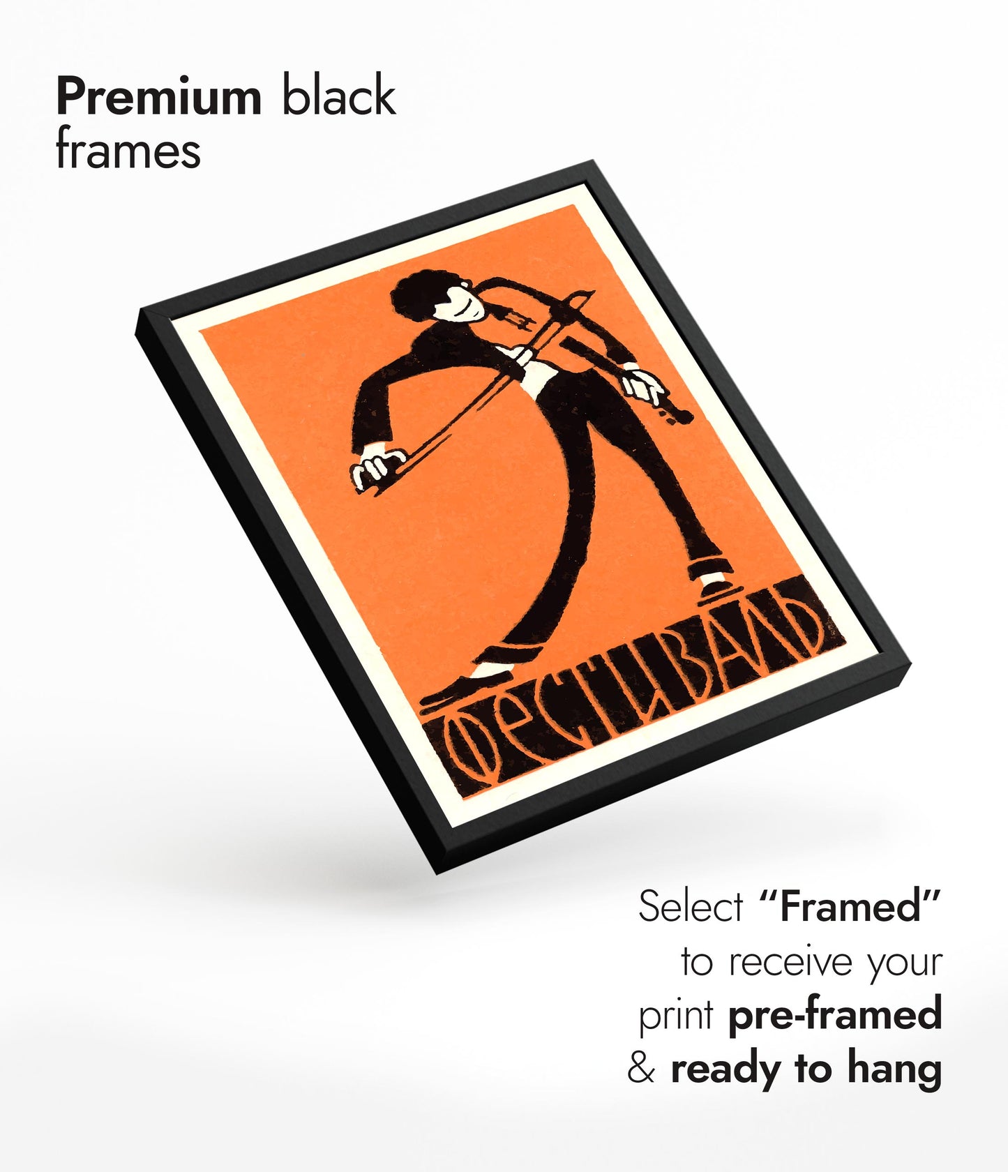 This vintage poster, titled "Violinist," features a stylized, expressive musician playing the violin against a vibrant orange backdrop. The bold black lines and minimalist design capture the essence of the performance, making it a striking piece for any music lover. Ideal for adding a retro touch to a space, this illustration celebrates orchestral art and instrumental beauty.
