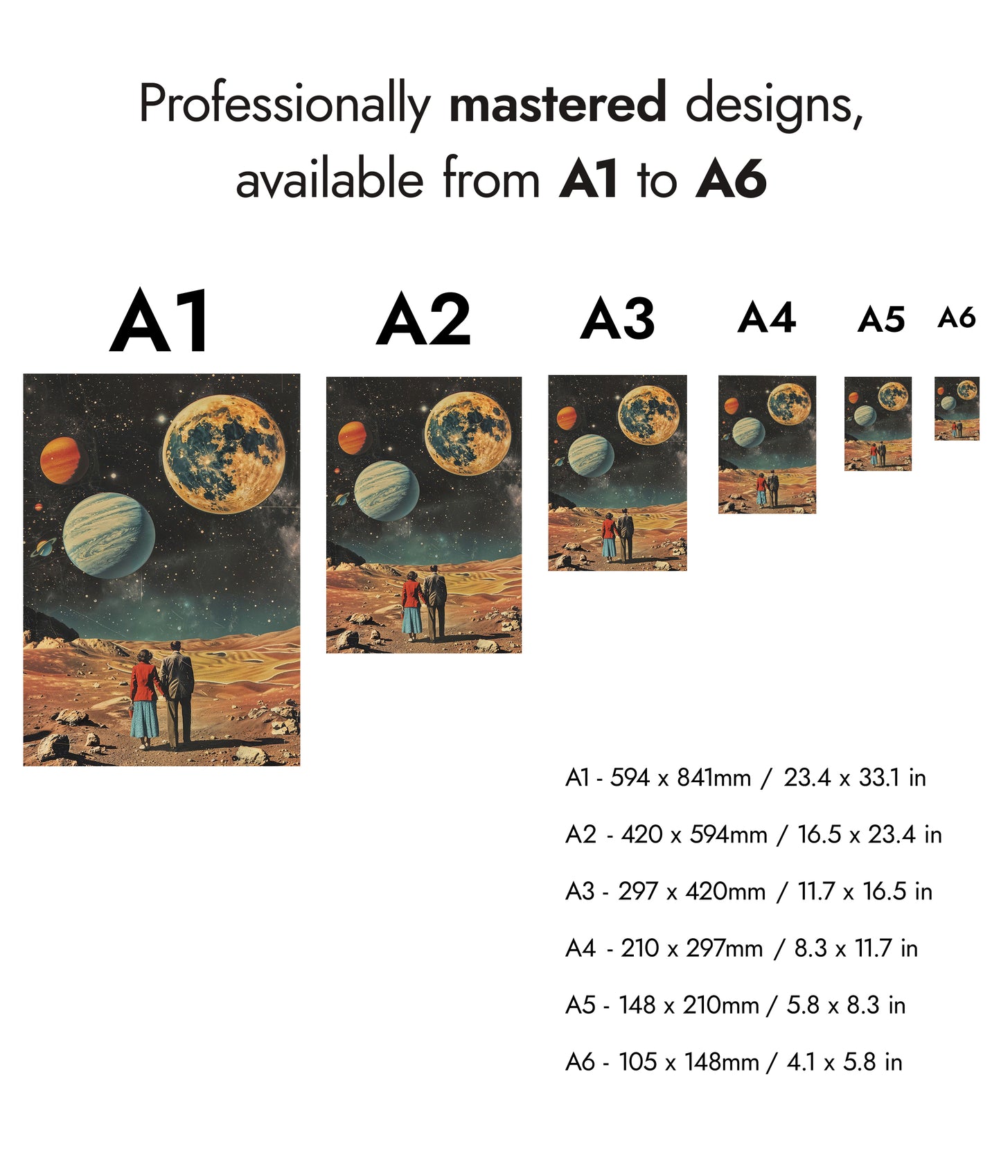 8 colour giclée print process on high-quality 230gsm archival matte paper. All our paper is FSC Certified and prints come with a lifetime fade-resistance guarantee.
