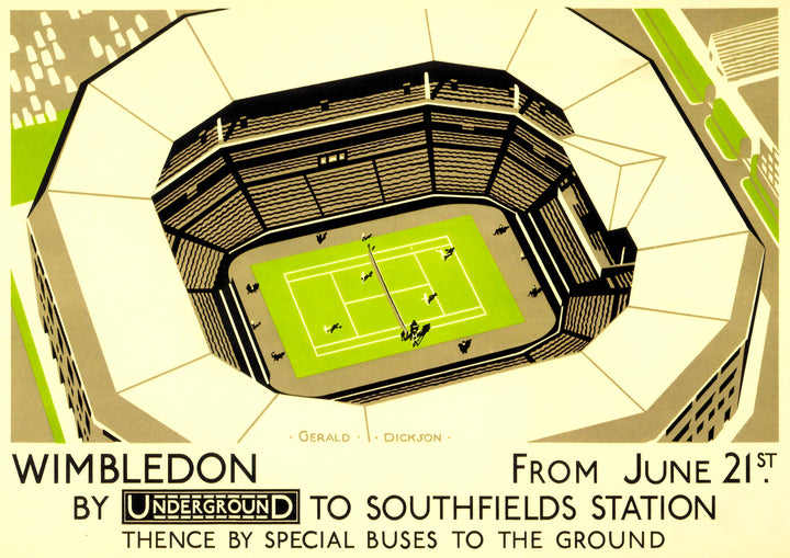 This vintage poster of Wimbledon Stadium, dating back to 1925, features an intricate bird's-eye view of the iconic tennis venue. The bold, illustrative style captures the essence of historic tennis matches. Ideal for lovers of sports history and classic illustrations, this striking print celebrates Wimbledon’s rich heritage and London’s sports culture.